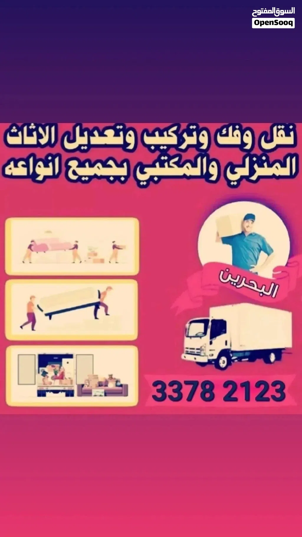 نقل وفك وتركيب اثاث مستعمل والجديد ونقل العفش داخل البحرين