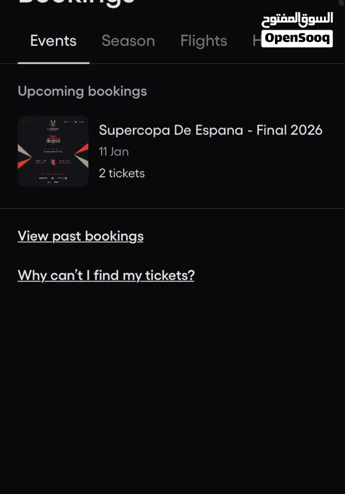 للبيع تذكرتين نهائي السوبر الاسباني في جدة