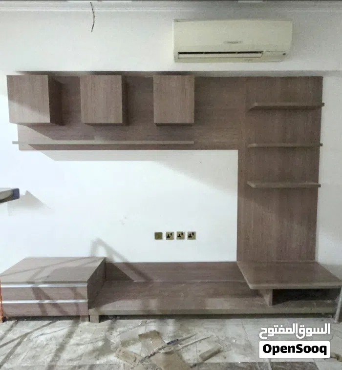 ديكور خشب شبه جديد لم يستعمل كثيرا جدا نظيف وقاعده خشبية لل TV Unit