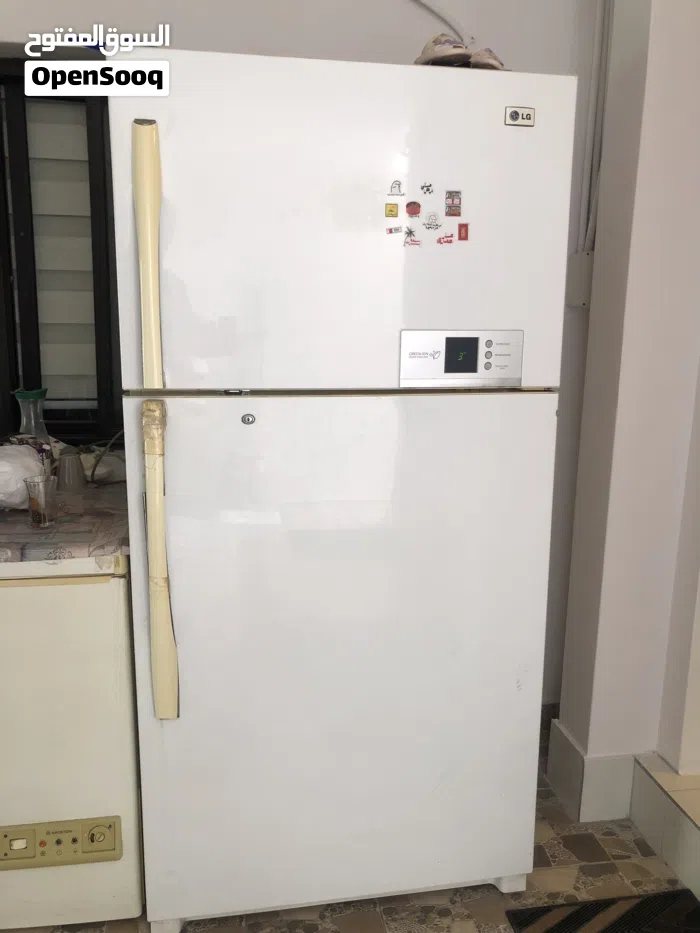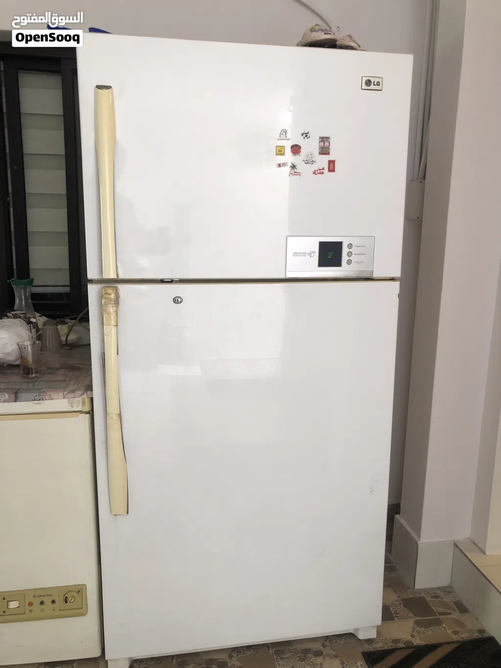 للبيع ثلاجة LG شغالة ونظيفة كبيرة يدة الثلاجة ومجر الفواكه شوي مكسور لاكن شغالة أحسن مايكون باردة ماليها صوت كلش