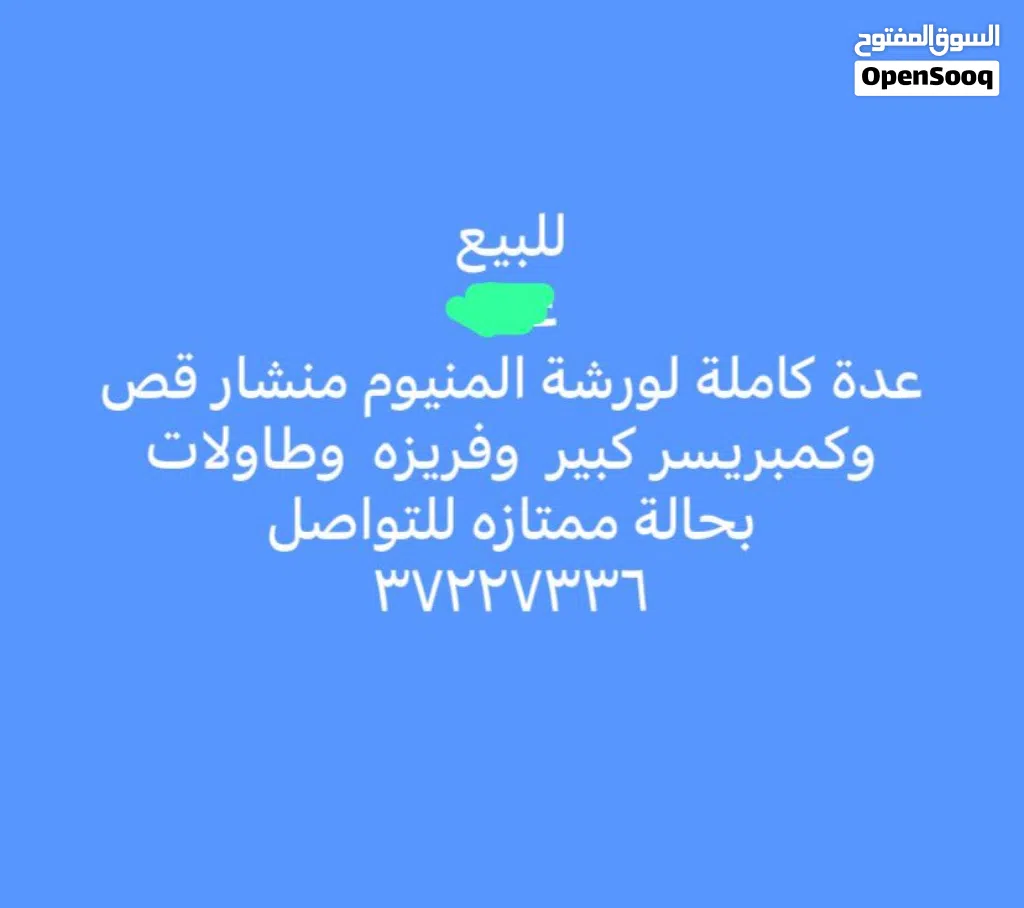 للبيع أغراض ورشه ألمنيوم كامله بحالة ممتازه