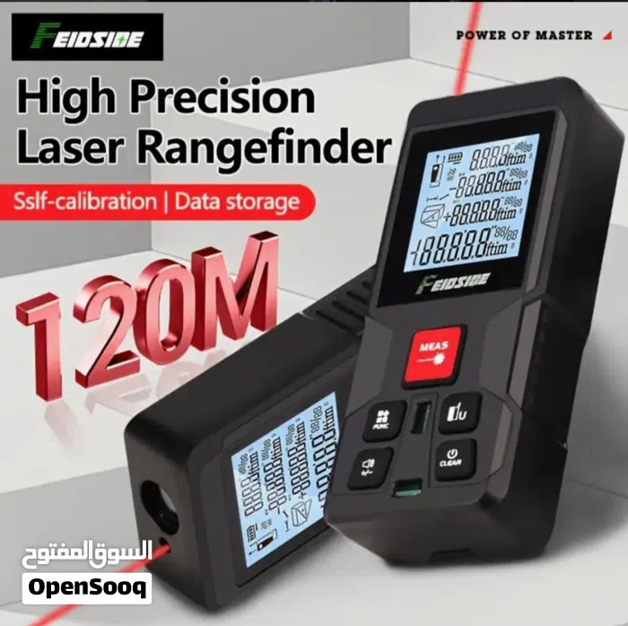 جهاز قياس المسافة بالليزر عالي الدقة بمدى يصل إلى 120 متر. يتميز الجهاز بوظائف القياس المتعددة مثل قياس المسافة والمساحة والحجم ووضع فيثاغورس.