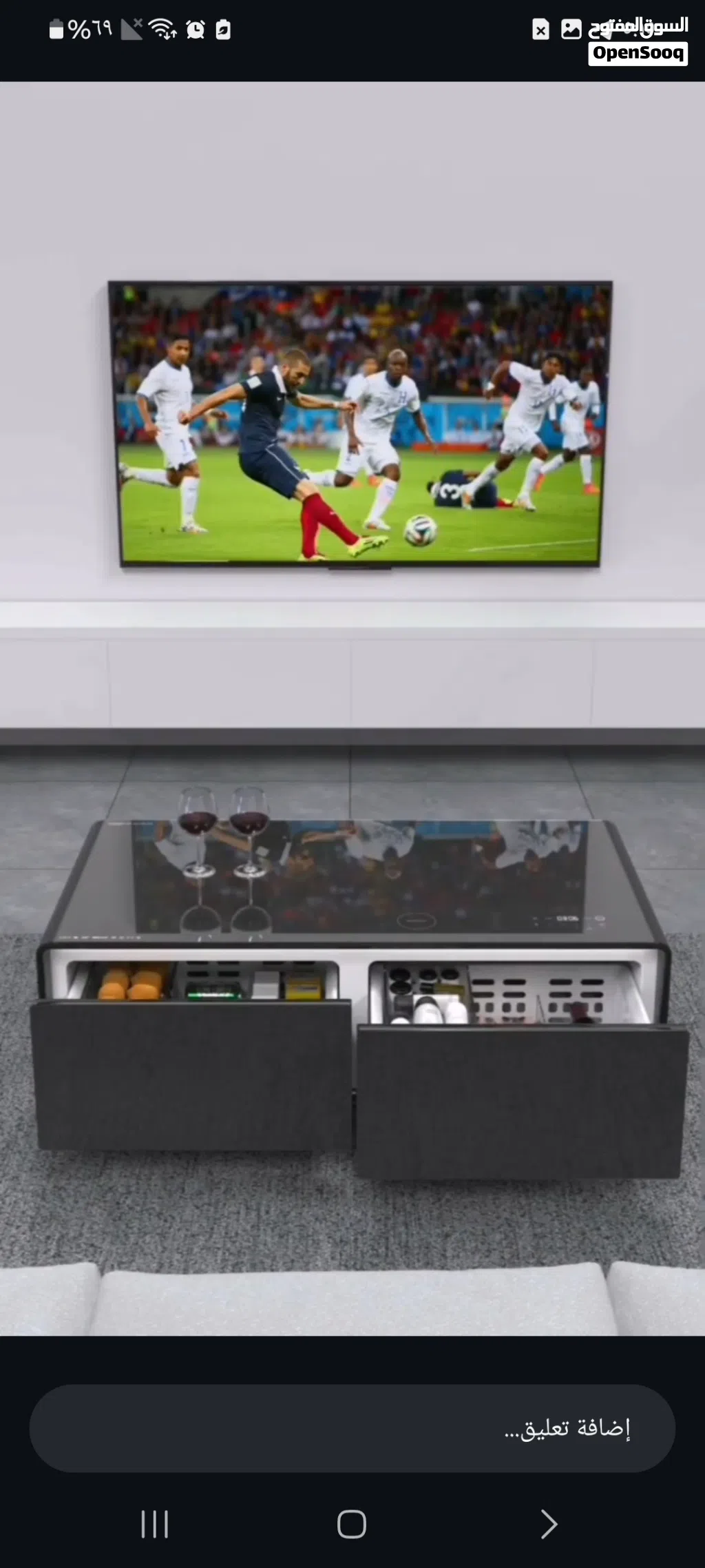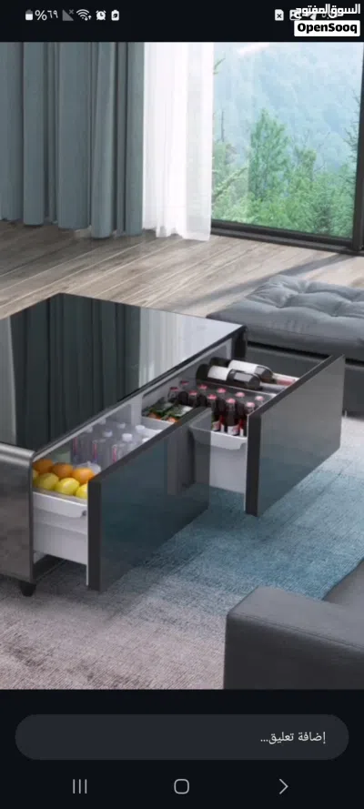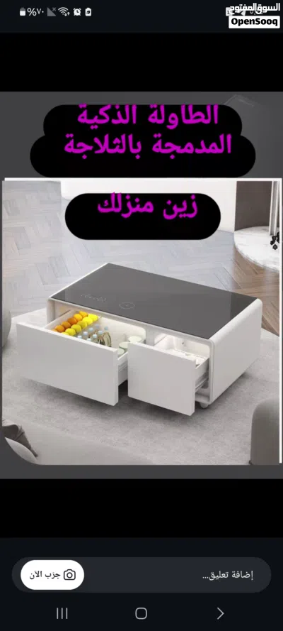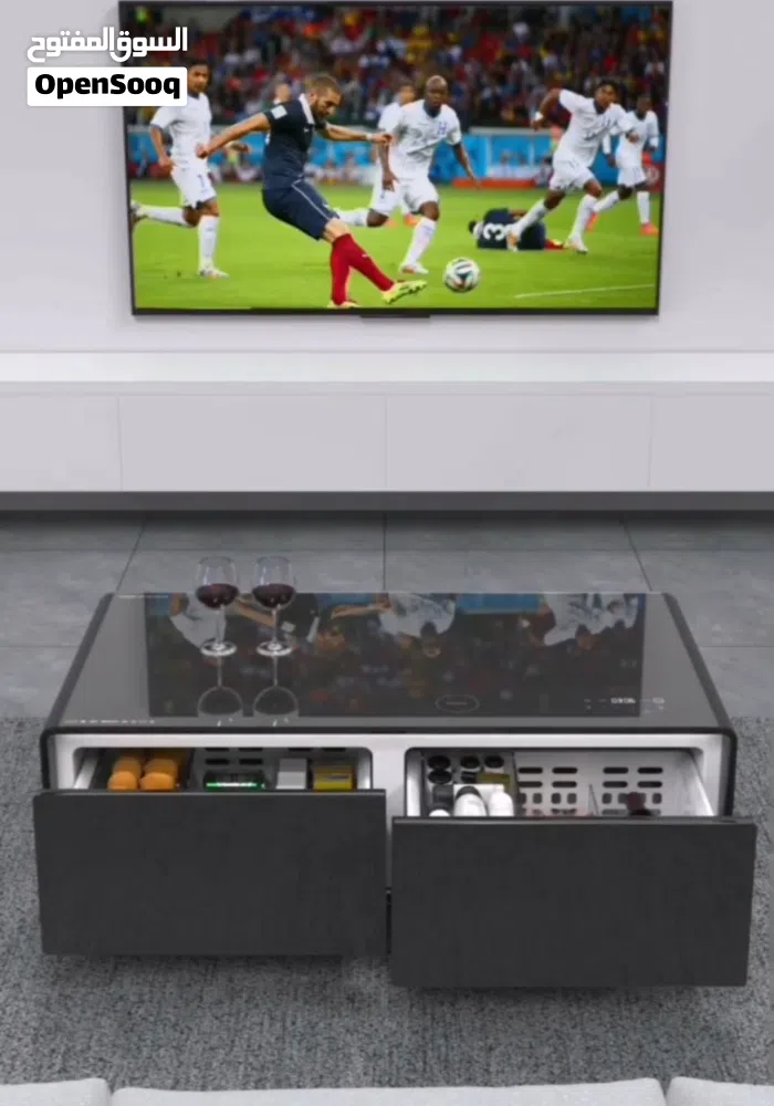 طاوله ذكيه تحكم ب اللمس فيها ثلاجه وشاحن لاسلكي ويو اس بي واضائه وام بي ثري
