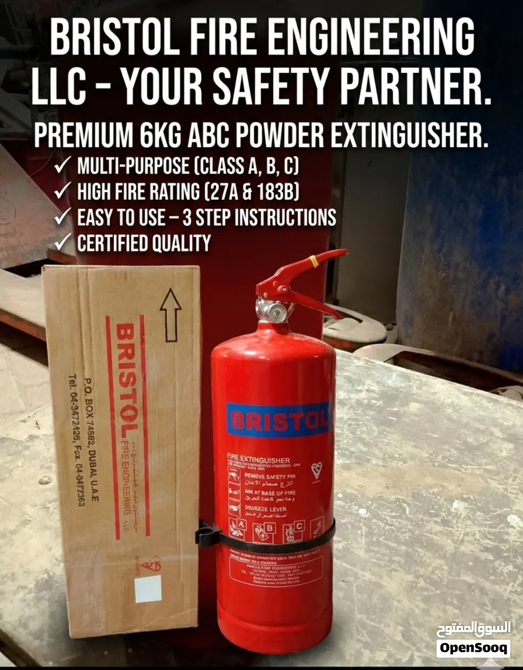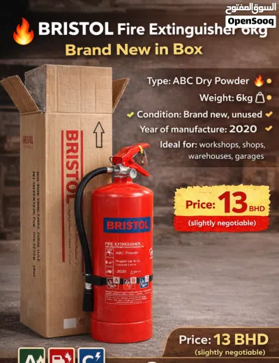 BRISTOL Fire Extinguisher 6kg ABC – Brand New in Box طفاية حريق BRISTOL 6 كجم – جديدة بالكرتونة