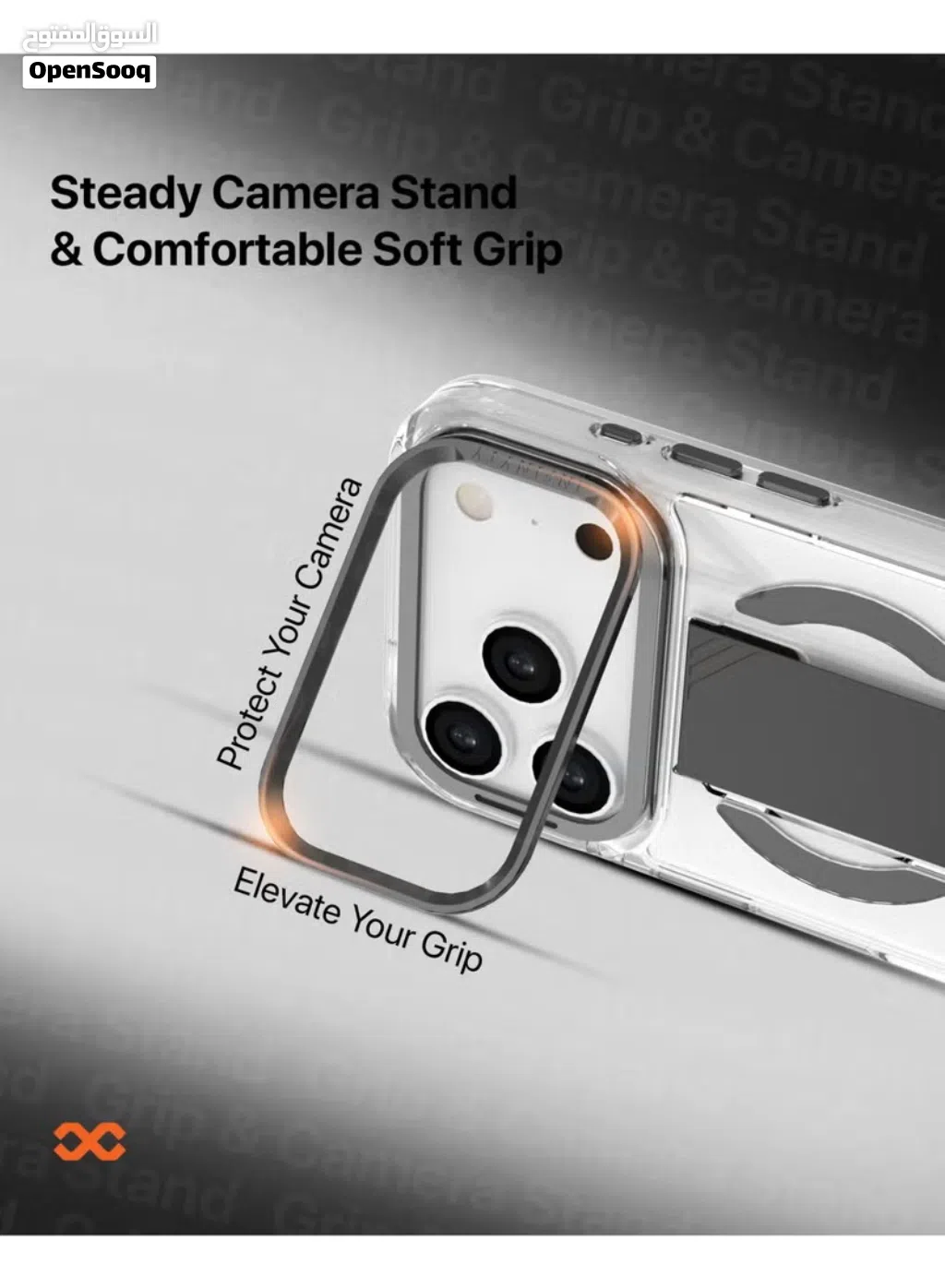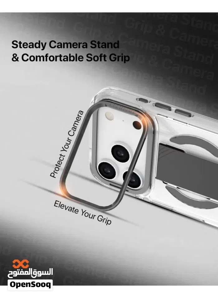 iPhone 17 Pro Max Clear Case with Soft Black Grip & Metallic Camera Stand– Grypsta, Premium TPU+PC B