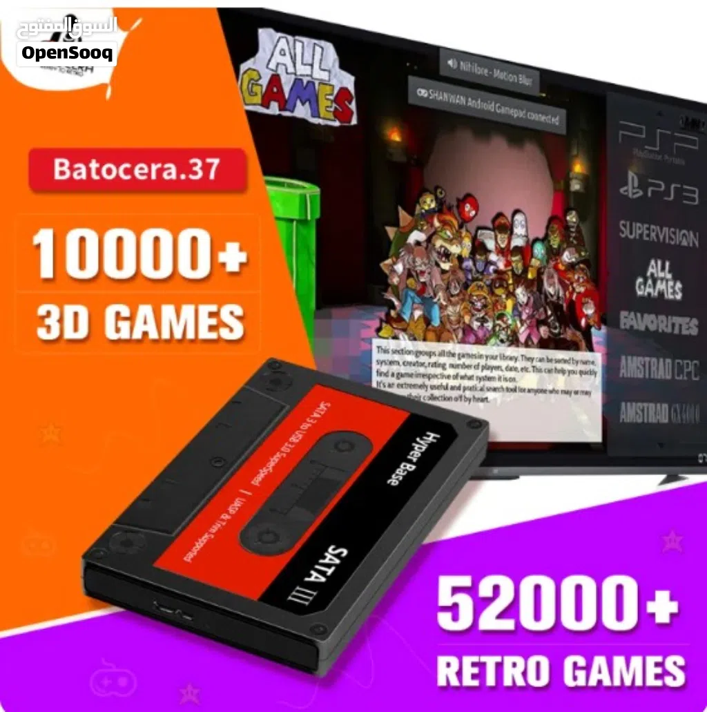 Pre-installed Batocera system, 100% Plug and Play, No driver needed, Pre-loaded 52000+ retro games,