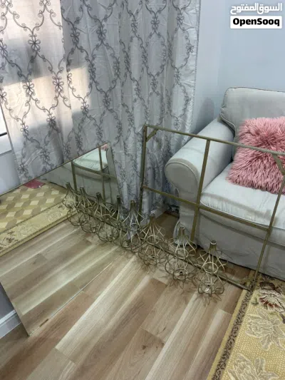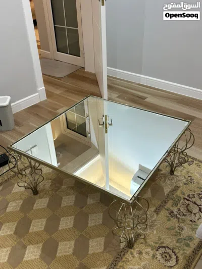 طاولة وسط زجاجيه مع حديد سهلة التفكيك الزجاج محمي بخشب من اسفل السعر 4 دينار