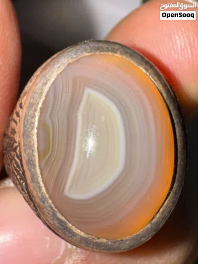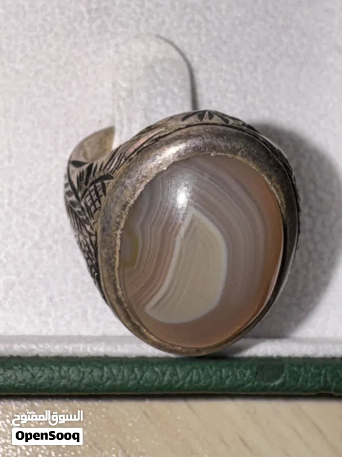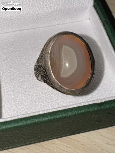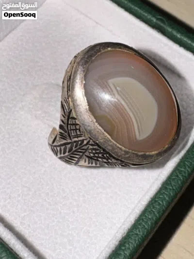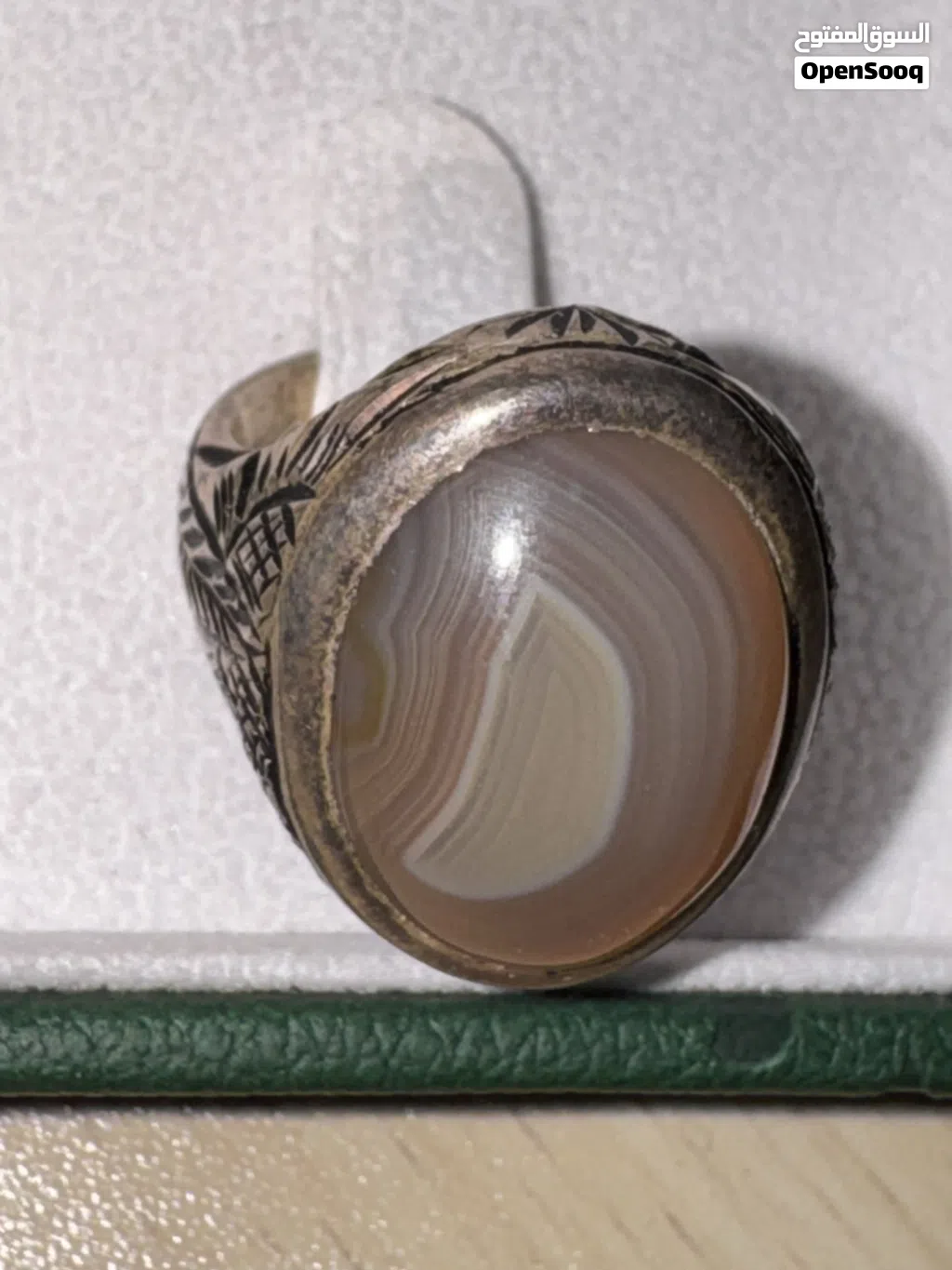 خاتم جزع يماني مع فضة بحرينية ثقيلة