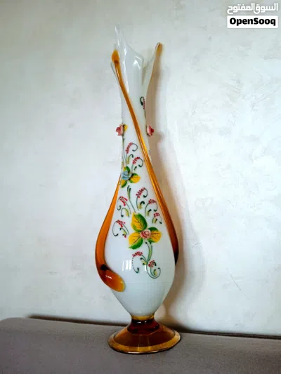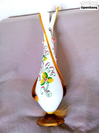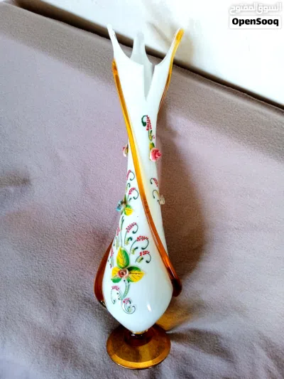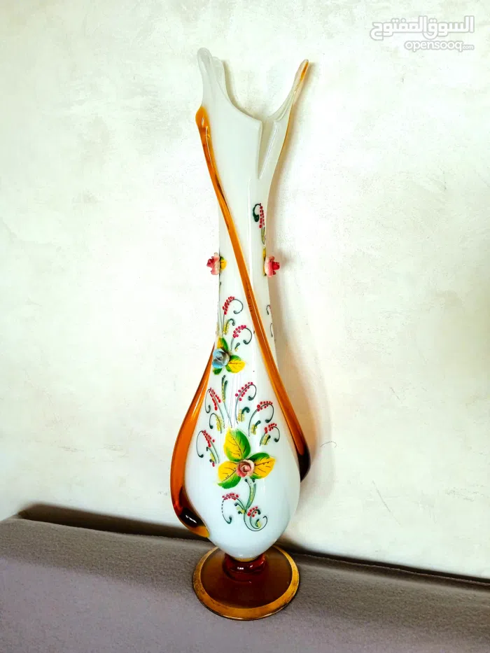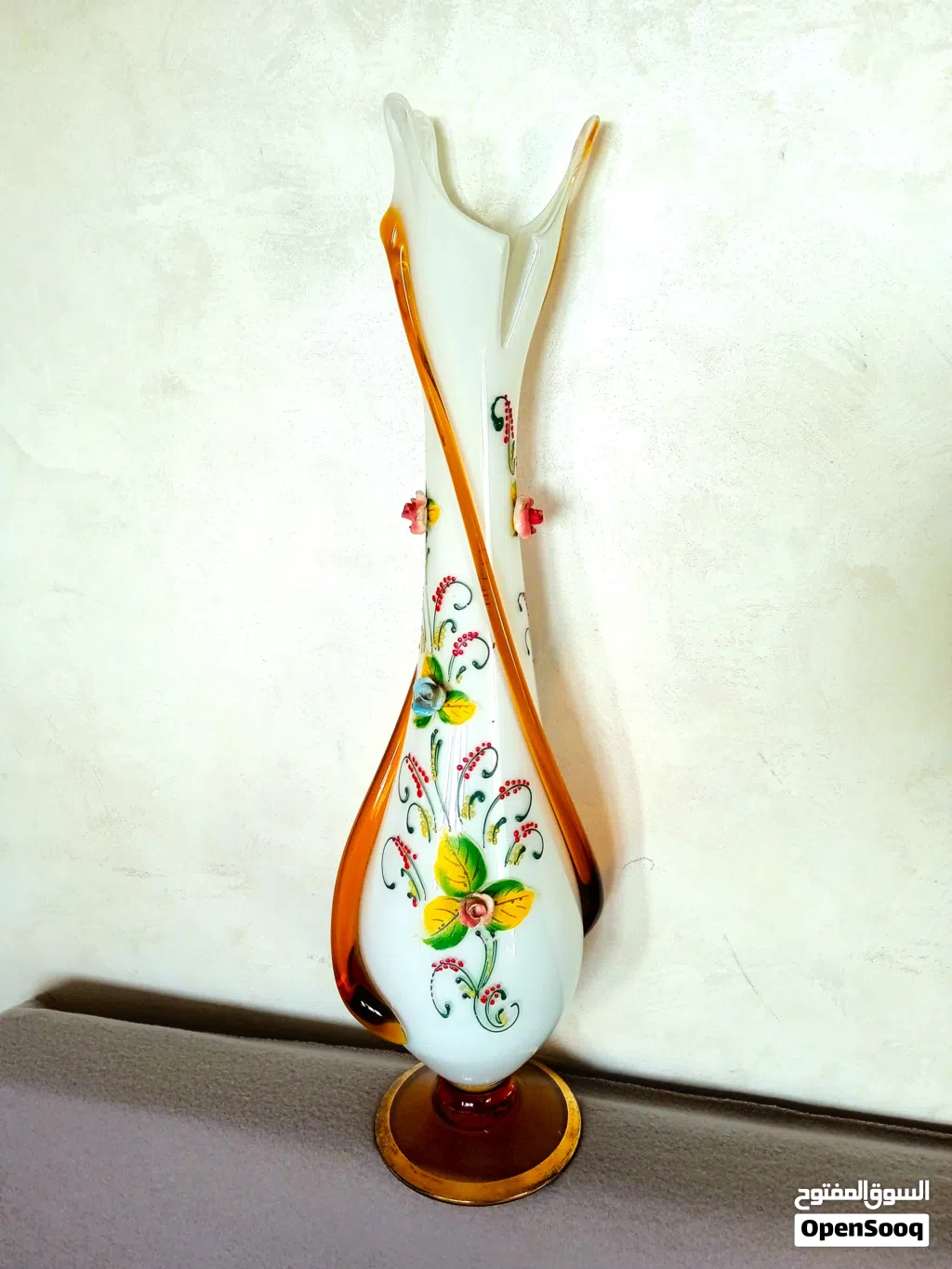 مزهرية فرنسية أنتيك من زجاج الأوبالين مستوحى من فن المورانو القديم للديكور الداخلي، عمل يدوي متقن من حرفيي صناعة الزجاج الفرنسيين المهرة.