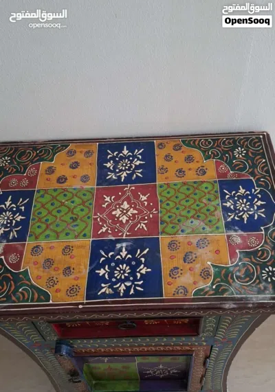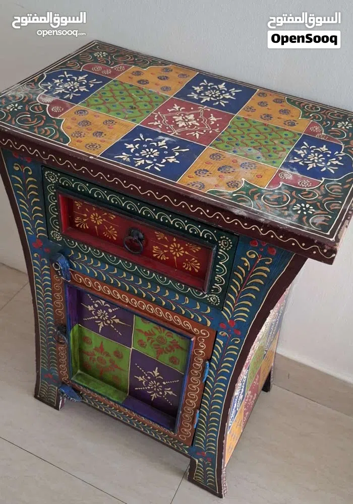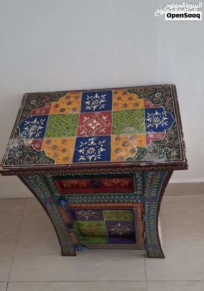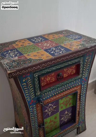 خزانة خشبية جداريّة صغيرة مزينة برسومات يدوية ملونة تجمع بين الزخارف الهندسية والزهور التقليدية. تتميز بأبواب مزخرفة تضيف لمسة فنية فريدة لأي غرفة. قطعة مثالية لعشاق الأثاث التراثي والفن الشعبي، تضفي أجواء دافئة وحيوية على الديكور الداخلي. بحالة جيدة وجاهزة للاستخدام أو العرض كقطعة ديكور مميزة.