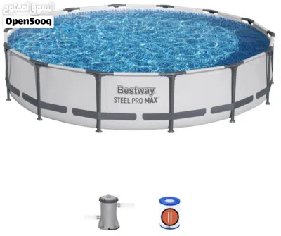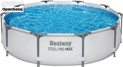 مسبح Bestway Steel Pro MAX الدائري فوق الأرض، والمصمم ليكون خياراً متيناً وسهل التركيب للاستخدام العائلي.