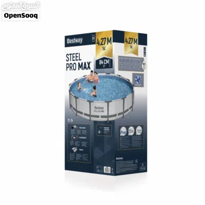 الأبعاد: قطر المسبح هو 4.27 متر (14 قدم)، مع ارتفاع (عمق) يبلغ 84 سم (33 بوصة).