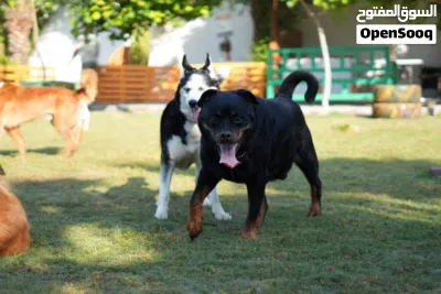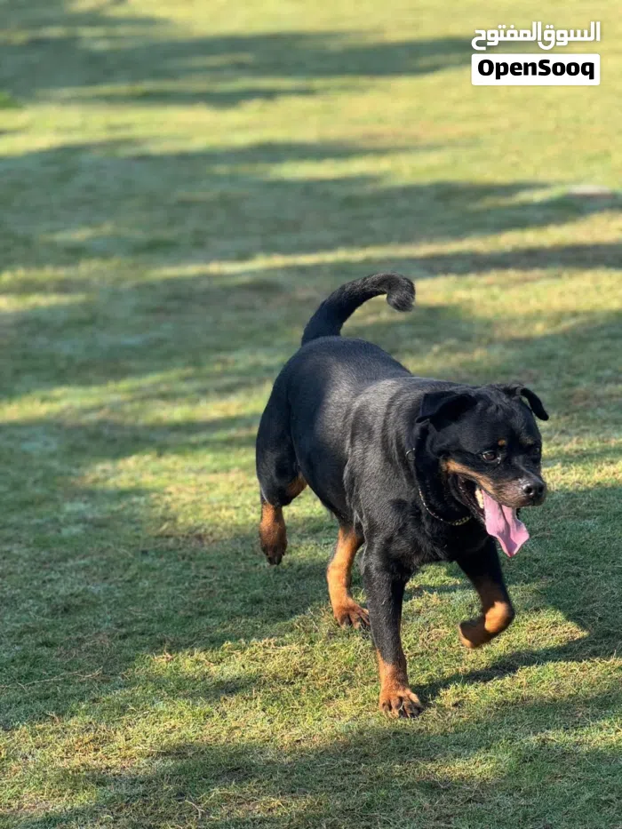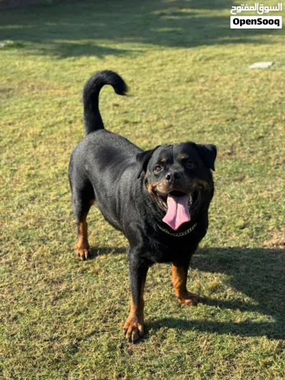 كلب روتوايلر للبيع، ذكر عمره ست سنوات و بصحة جيدة و أليف مع الكلاب البقية، مدرب و يسمع التعليمات.(100دينار)