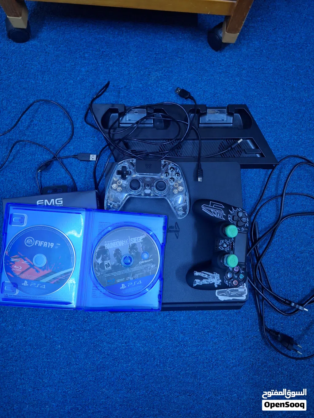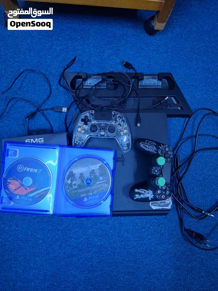 بلايستيشن 4 سليم مستعمل استعمال نظيف مع قرصين فيفا 19 و rainbow six مع 3 يدات و جهاز تبريد و كل اغراض البلايستيشن و السعر قابل للتفاوض سواء تصال او تواصل على الواتساب