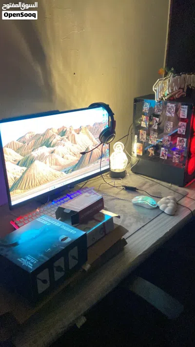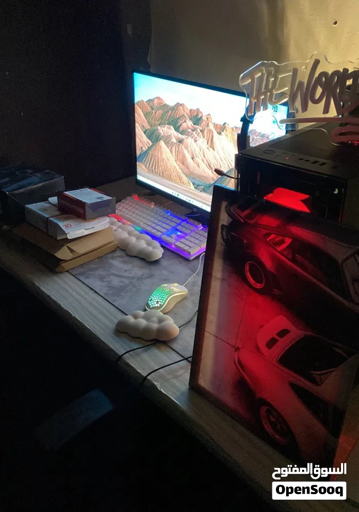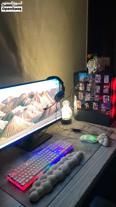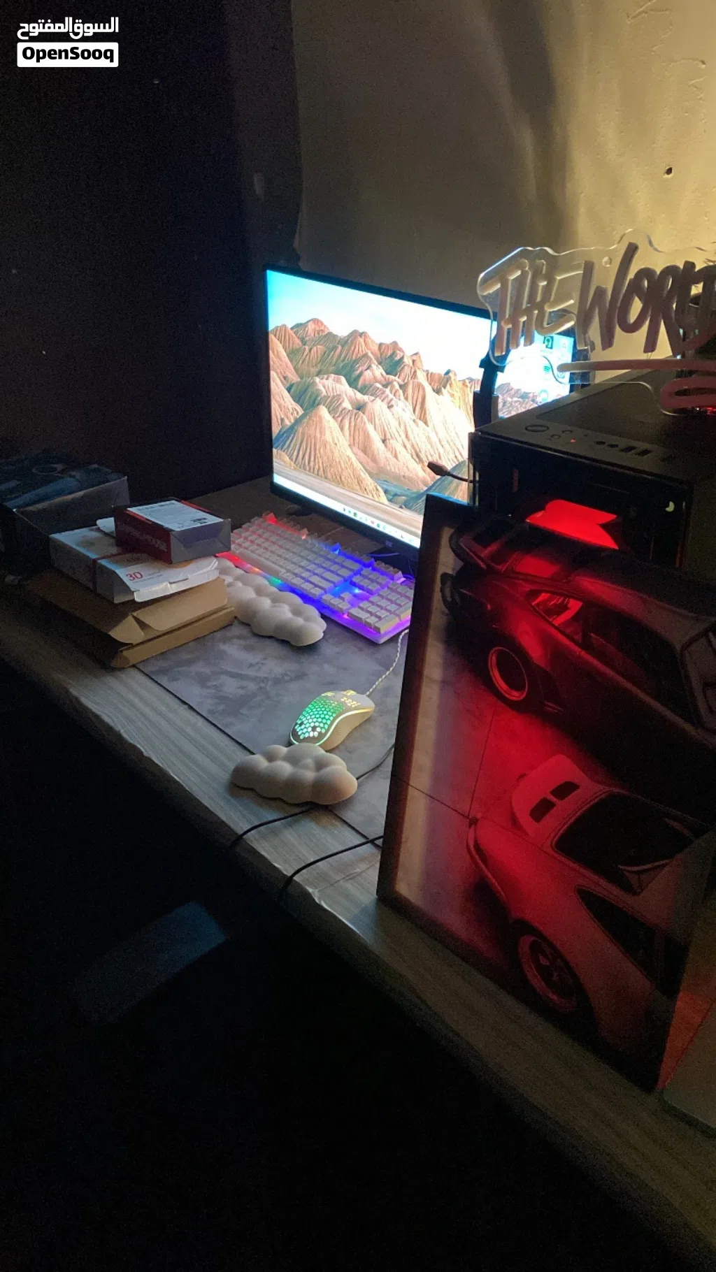 ول كيبورد من نفس شركه وبعد زين ويجي معها غيوم حق راحه اليد وماوس باد ولوحه وثري دي واضائا بيضاء