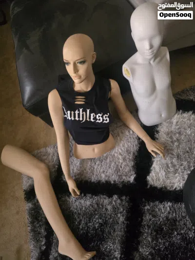 - Female mannequin – comes with arms and one leg. Needs a torso replacement but still can be used to display upper clothings bras etc.