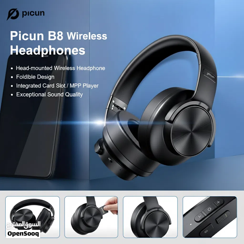 سماعة Picun B8 لاسلكية – قابلة للطي، مدخل كرت، صوت قوي 50 مم