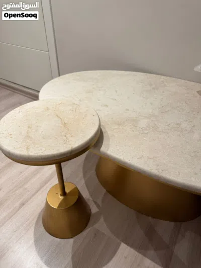 للبيع طقم طاوله رخام كبيره وسط للصاله وصغيره جانبيه نظيفه جدا استعمال بسيط