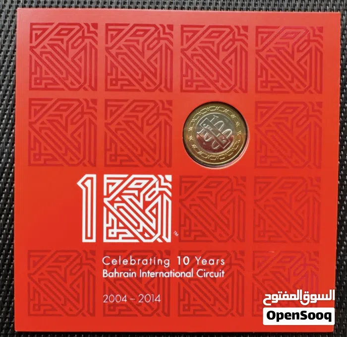 BAHRAIN GRAND PRIX 10TH ANNIVERSARY 2004-2014 BI-METALLIC 100 FILLS COIN IN CARD