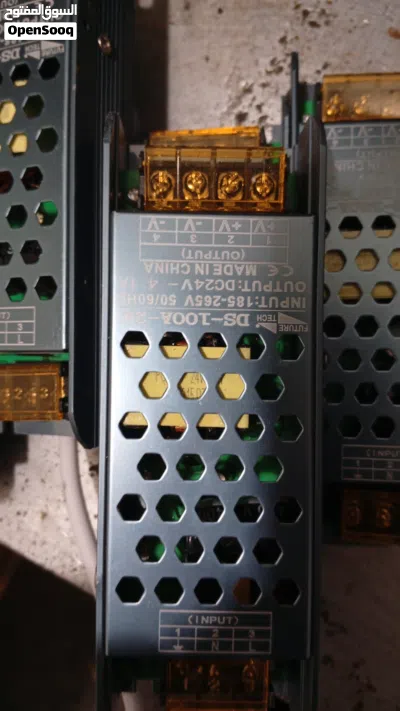 Based on the image, the device is a Future Tech DS-100A-24 Switching Power Supply. It is designed for DIN rail mounting and converts AC input to a stable 24V DC output.