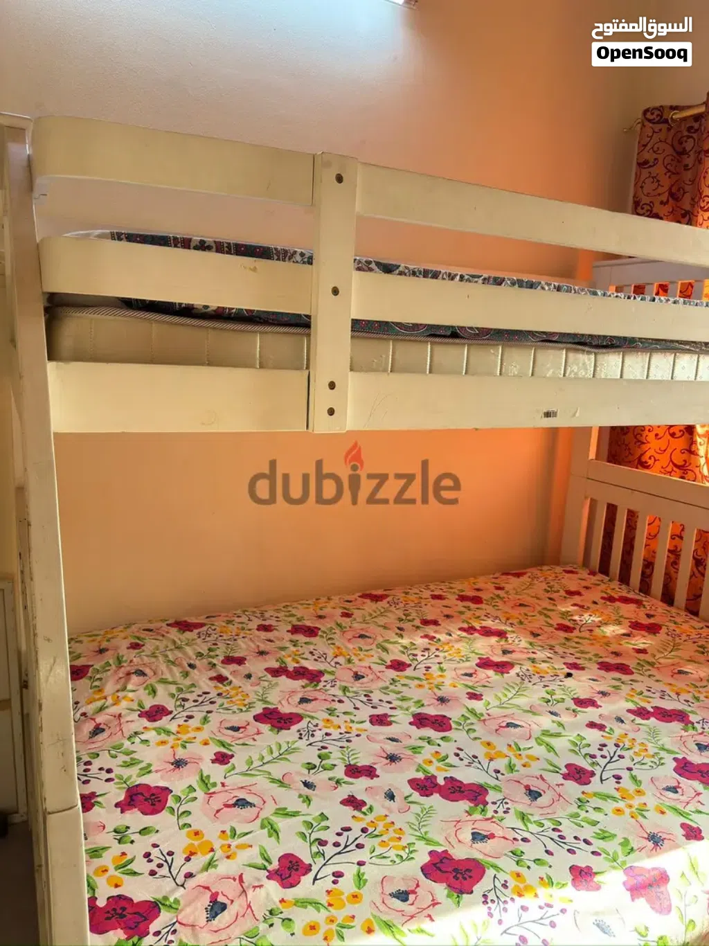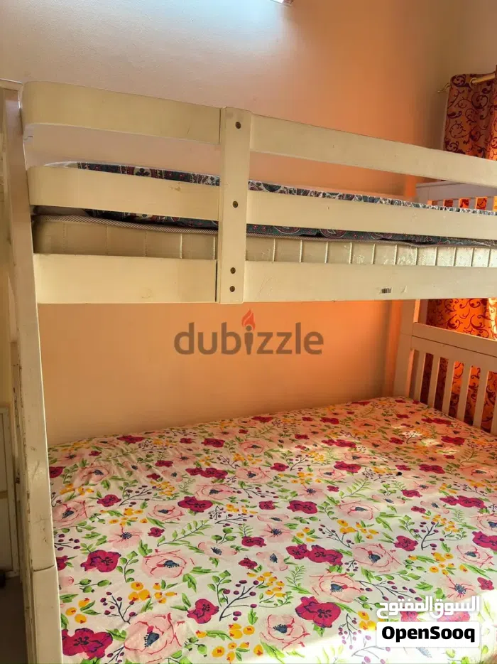 White Bunk Bed for sale in good condition, single on top and queen below.