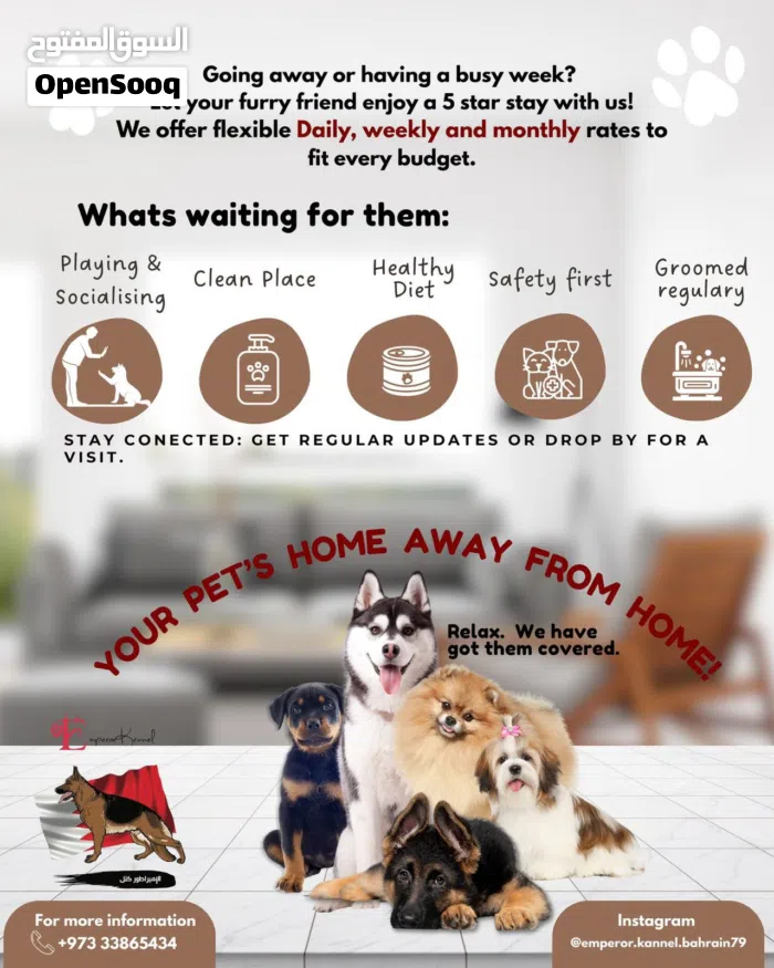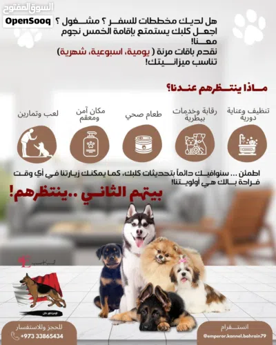 Contact +اضغط لإظهار رقم الهاتف 973338654XX to book a spot for your pet!