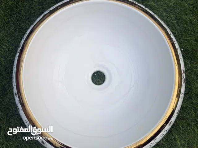 حوض غسيل انيق للحمام بحافة ذهبية تعطيه طابع فاخر ب سعر 30 دينار فقط