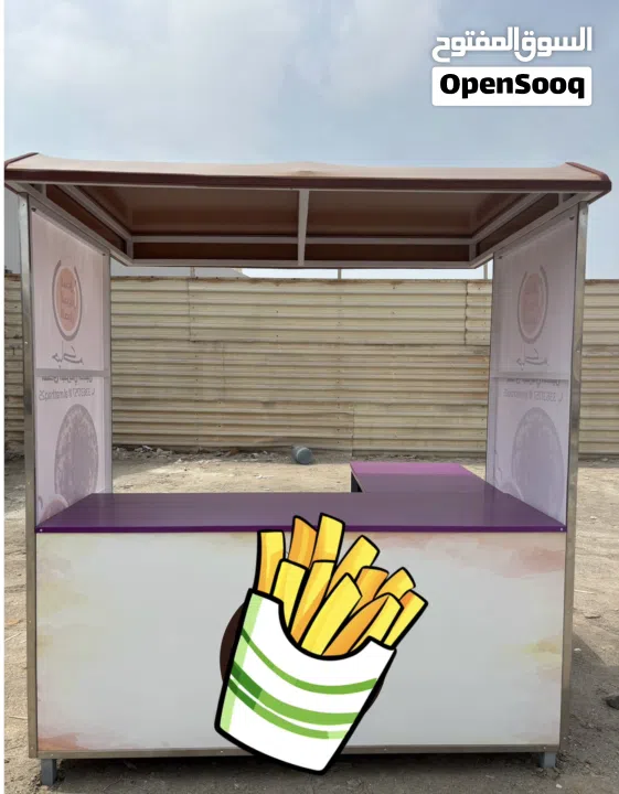 للبيع عربة ثابتة تصلح لمشروع بيع صغير بحالة ممتازة، مكونة من طاولتين وسقف طربال وجوانب للبنر، سهلة الفك والتركيب بالقطعة.