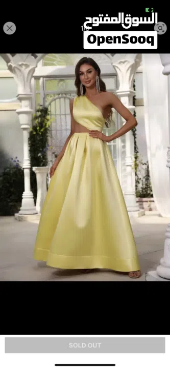 فستان اصفر جميل جداً تم لبسه مره واحده فقط طويل مع بطن ظاهره وفتحة ساق مثيره