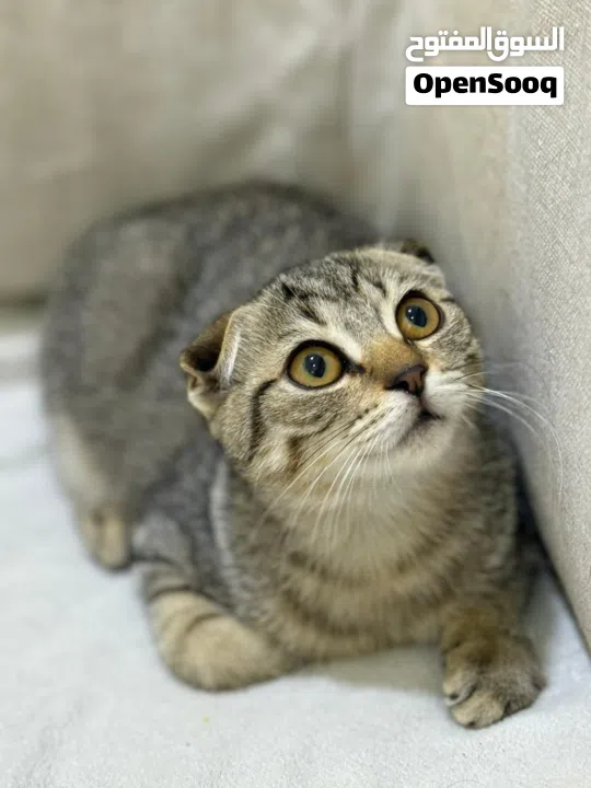Hi there! My name is yara, and I’m not just any kitten—I’m a female scottish fold with a stunning black Unpatterned Ticked Tabby coat and glowing yellow orange eyes that are full of curiosity. I may only be 4 months old, but I already know I love being close to people. In fact, my favorite place to sleep is right on the bed next to my human. There’s nothing better than cozying up after a fun day of play! I have the softest fur, the cutest folded ears, and a personality that will make you fall in