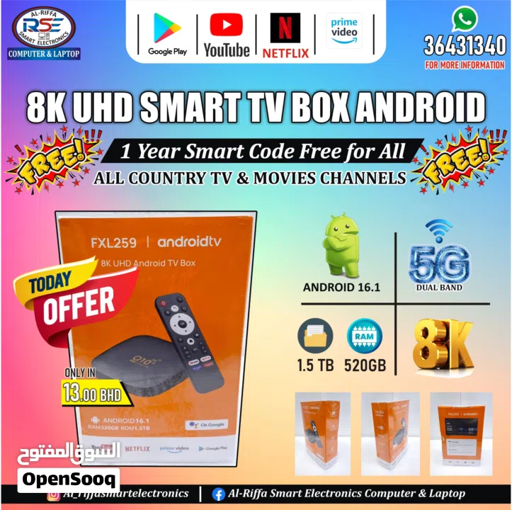Smart 8K Ultra HD Android TV Box (Just Plug & Play) with Android 16.1 Dual Band WIFI