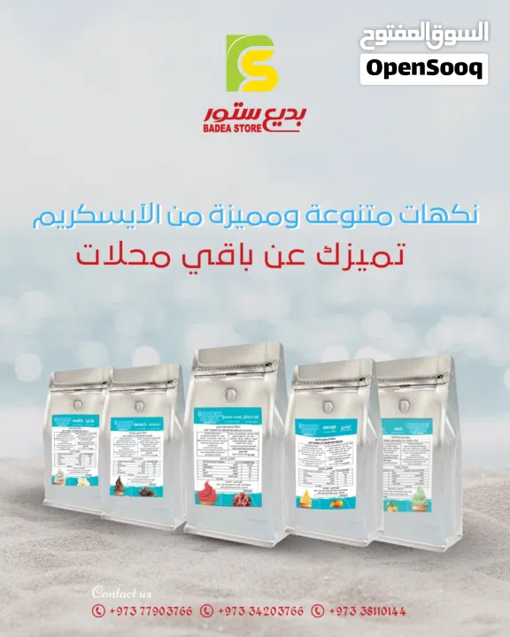 Badi' Store offers a range of ready-made soft-serve ice cream mix powders for ice cream shops. Excellent quality, high-grade ingredients, easy to use, and very reasonable prices.